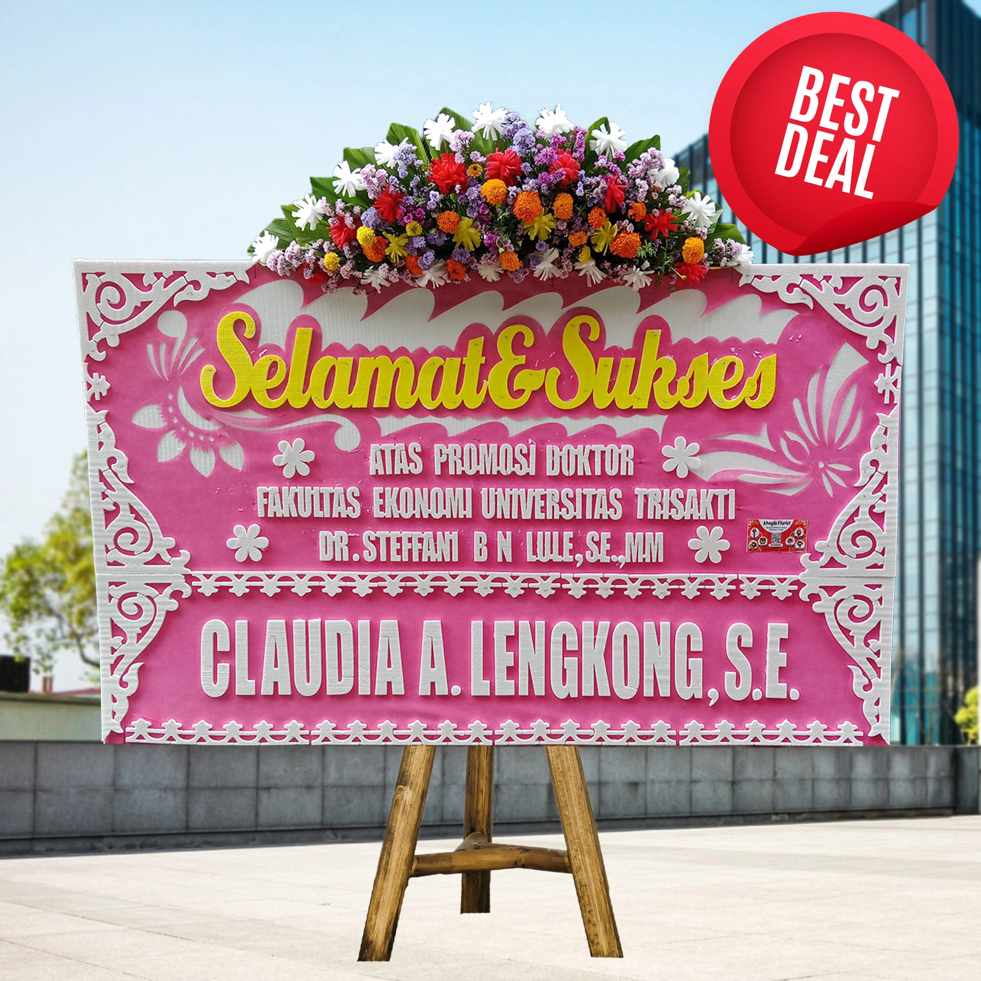 Bunga papan ucapan Congratulations dengan desain mewah dan profesional, khusus untuk acara grand opening usaha, restoran, toko, maupun kantor.